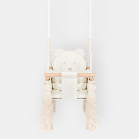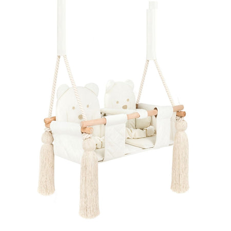Jede Schaukel wird aus massivem Holz und verstärkten Baumwollseilen gefertigt. Die Modelle für Erwachsene tragen bis zu 100 kg, während die Babyschaukeln bis zu 20 kg ausgelegt sind. Kinderschaukeln sind mit integrierten Sicherheitsgurten und erhöhten Rückenlehnen für eine stabile und komfortable Sitzposition ausgestattet.