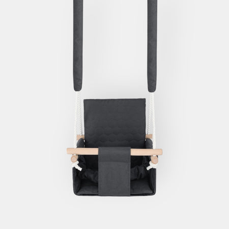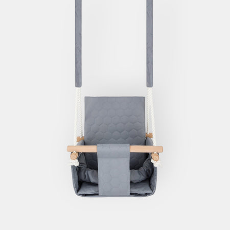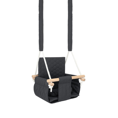 Jede Schaukel besteht aus verstärktem, wasserabweisendem Stoff, verfügt über robuste, bis zu 180 cm verstellbare Seile sowie integrierte Sicherheitsgurte, die eine stabile Position während der Nutzung gewährleisten. Die erhöhte Rückenlehne bietet zusätzlichen Halt und ist geeignet für Babys ab 6 Monaten bis zu 20 kg.